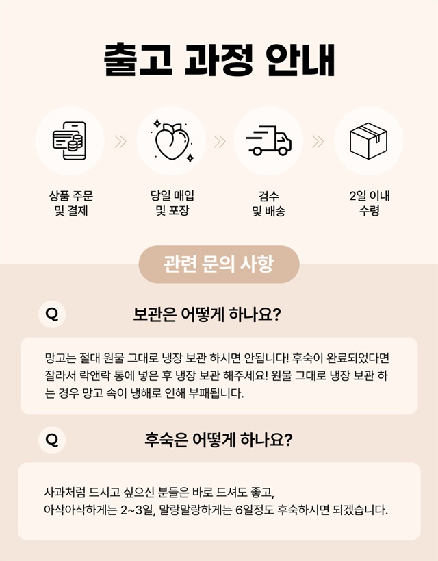 · 배송은 입금확인된 날짜로부터 1~3일 소요되며 최대 7일 이내 제공됩니다. ( 공휴일, 기상악화 등 불가피한 상황에 따라 추가 지연될 수 있습니다.)